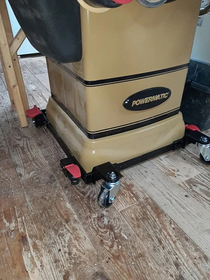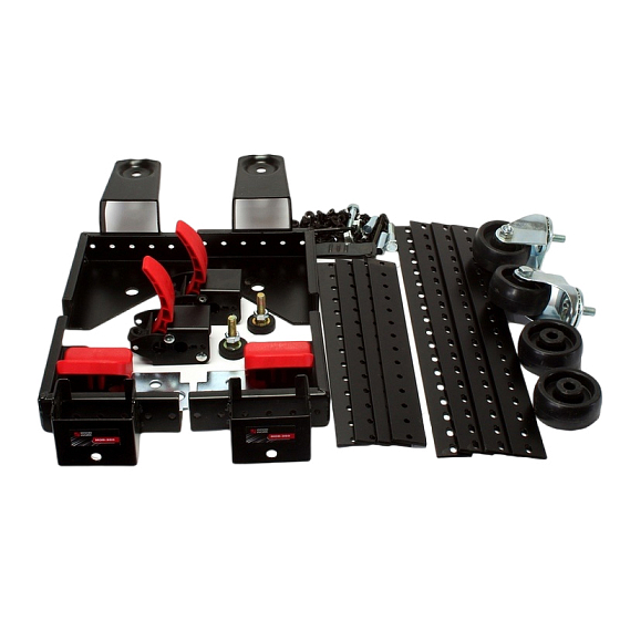 передвижная регулируемая база MOB-350 Woodwork для перемещения станков до 300 кг имеет прочную металлическую раму, состоящую из четырех массивных угловых частей, которые снабжены колесами с тормозом и вывешивающими опорами
