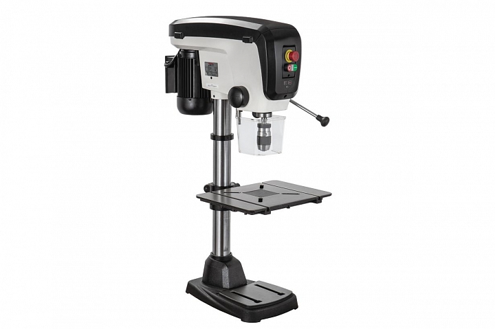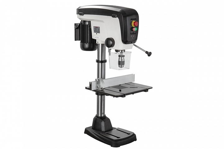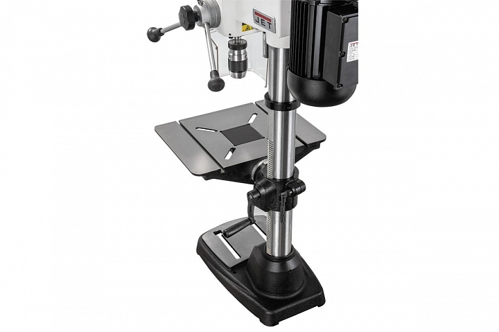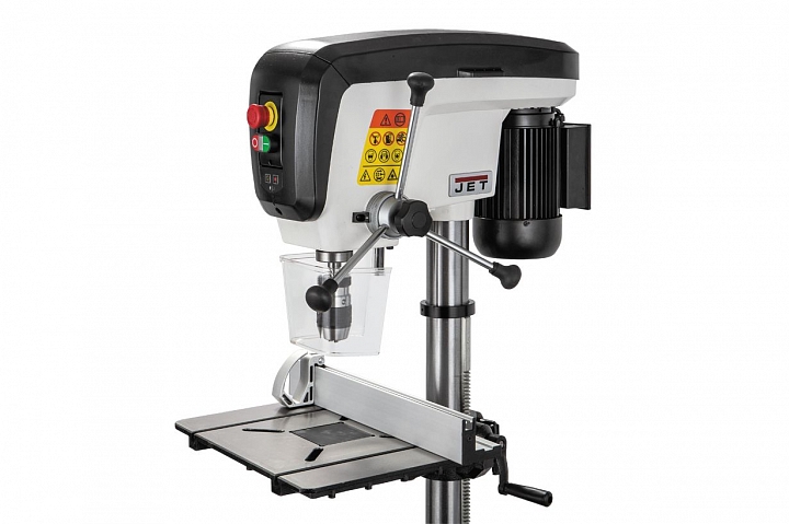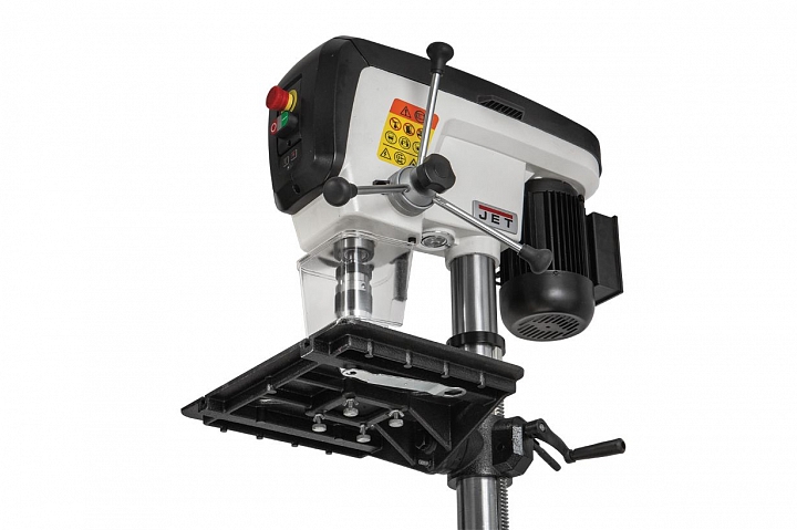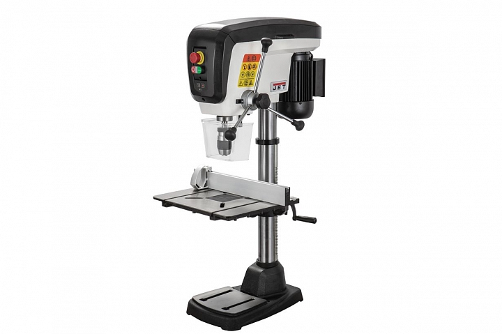 Jet JDP-15В - настольный вариант профессионального сверлильного станка для применения в столярной мастерской. Его рабочие параметры оптимизированы для решения задач, возникающих при деревообработке: увеличен ход пиноли шпинделя, повышена максимальная скорость вращения, рабочий стол увеличенной площади имеет прорези для крепления заготовки с помощью струбцин и большое отверстие в центре для сменной («жертвенной») вставки. Важная особенность – наличие четырех регулировочных винтов под основанием, что позволяет использовать вставки, сделанные из материала разной толщины. В остальном конструкция аналогична традиционным моделям, ориентированным на сверление металла, и не уступит им с точки зрения жесткости, массивности и запаса прочности.
